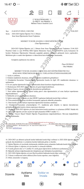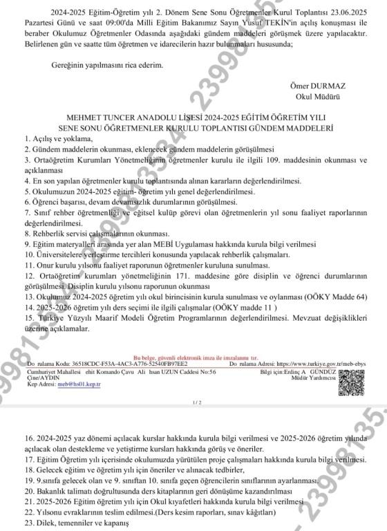 Sene Sonu Öğretmenler Kurulu Toplantısı Bilgileridir. 23 Haziran...